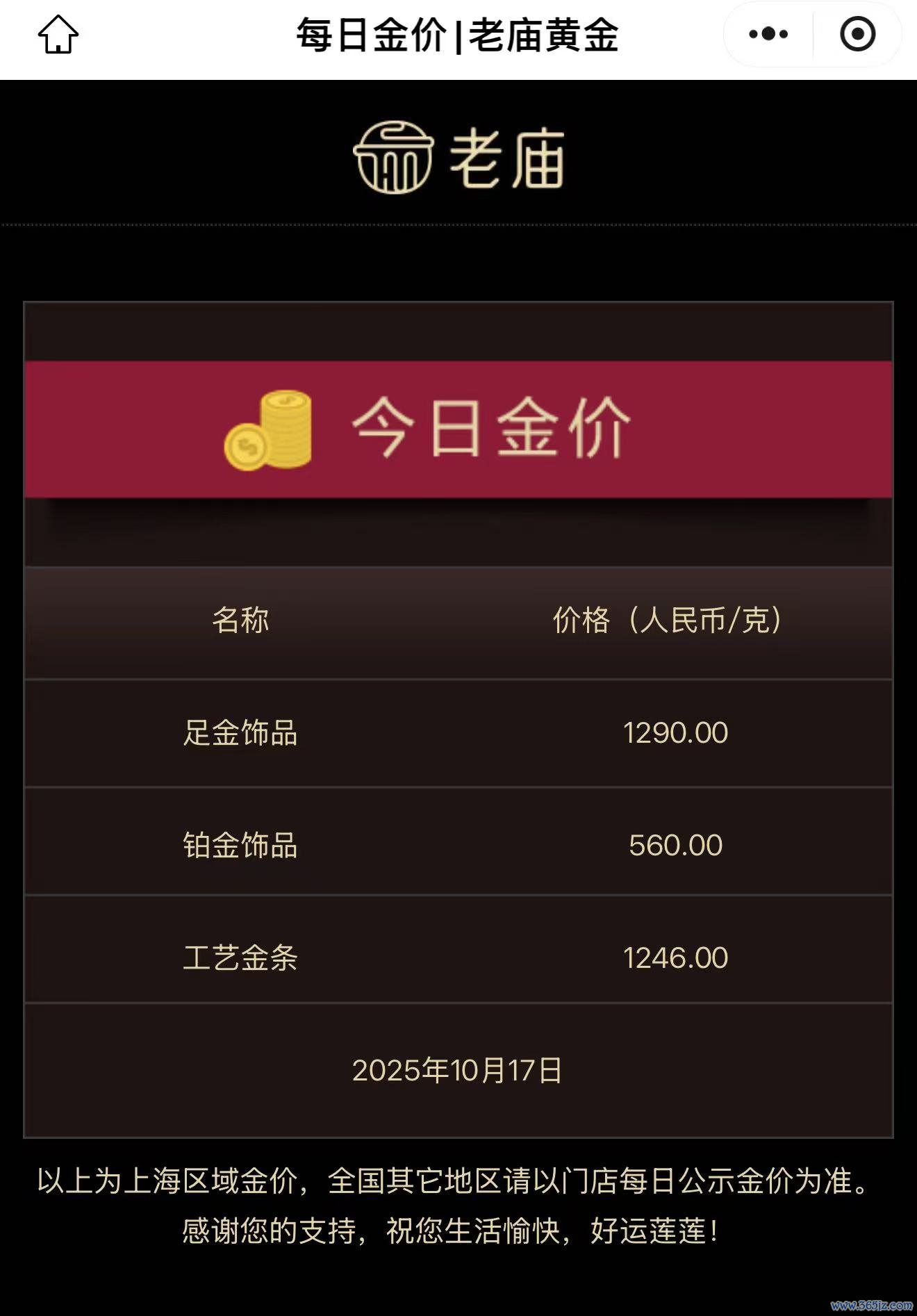 国内多家品牌金饰克价再涨,老庙黄金克价1290元国内多家品牌金饰克价再涨,老庙黄金克价1290元