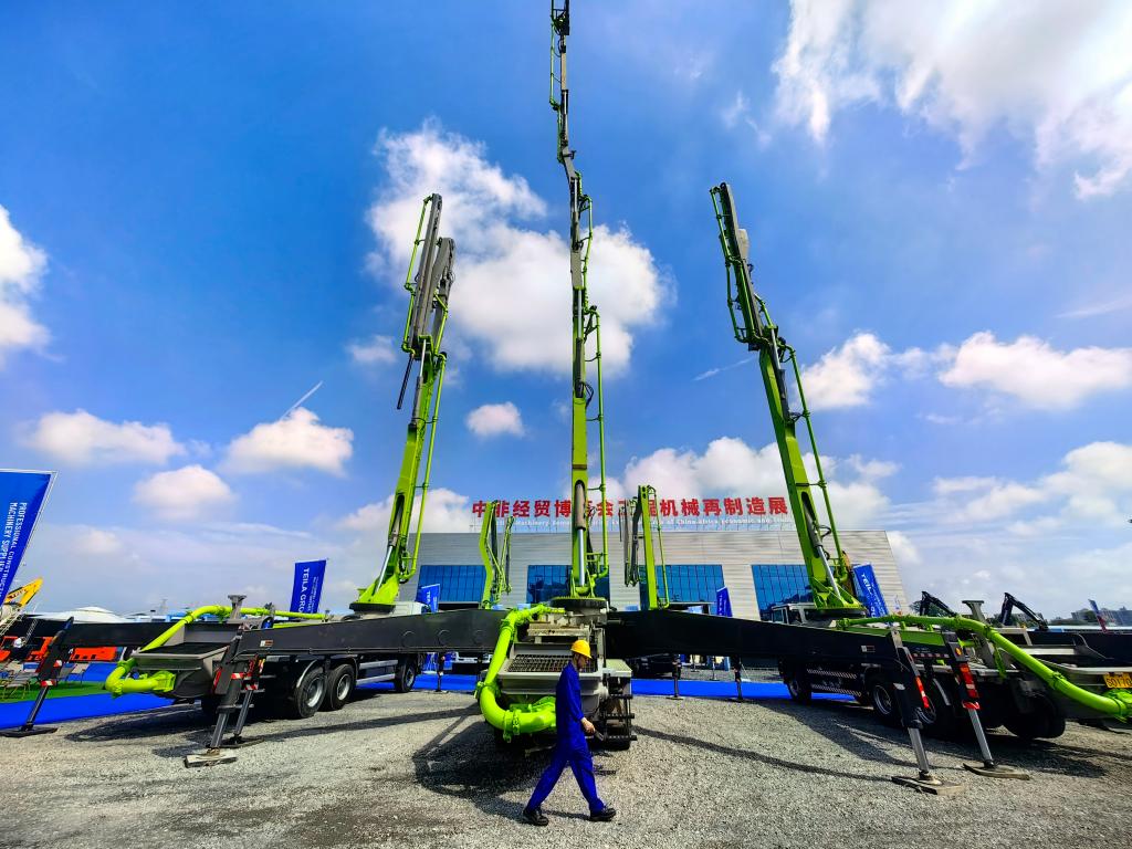 作为本届中非经贸博览会唯一在长沙以外举办的展览,再制造展规模宏大。约4万平方米的中心展区展出的大量挖掘机、起重机、混凝土泵车、装载机等“机甲巨兽”,是使用回收旧设备再制造生产。它们外观与全新工程机械几乎没有区别,性能可以满足基建各类场景需求。徐工集团工作人员现场操作一台再制造的挖机用斗齿“握”着毛笔,在地面一张红纸上端端正正写下了“中非经贸博览会”七个字,引得在场中外人士鼓掌叫好。